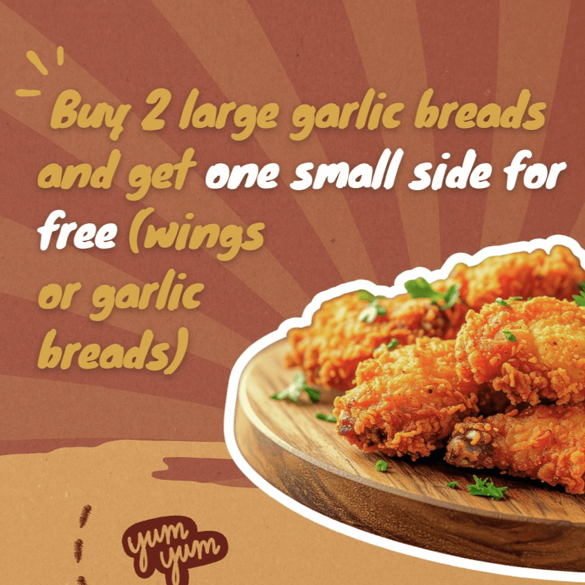 Buy 2 Large Garlic Breads & get a Small Side for FREE