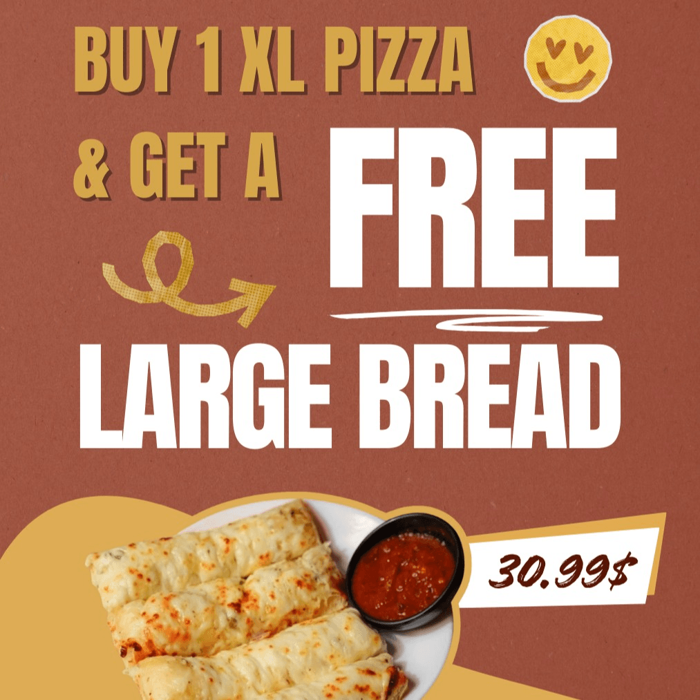 Buy 1 XL pizza & get a FREE LARGE cheesy garlic bread of your choice.