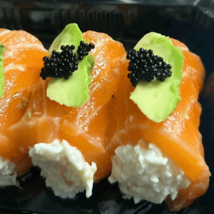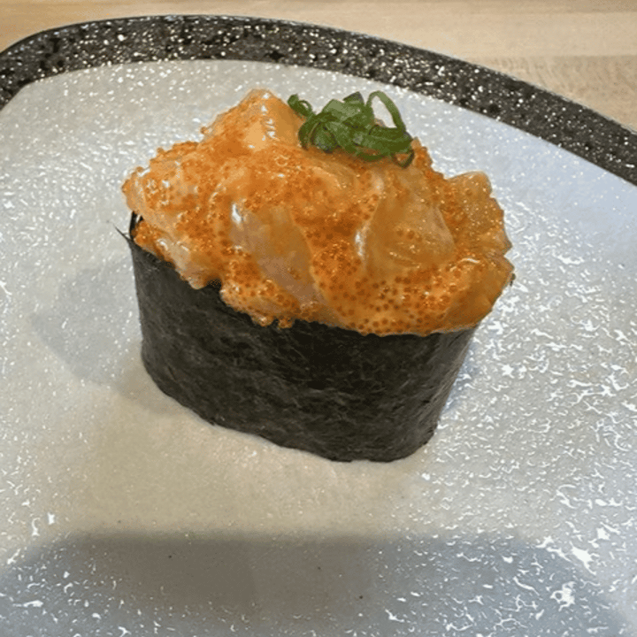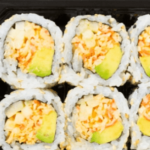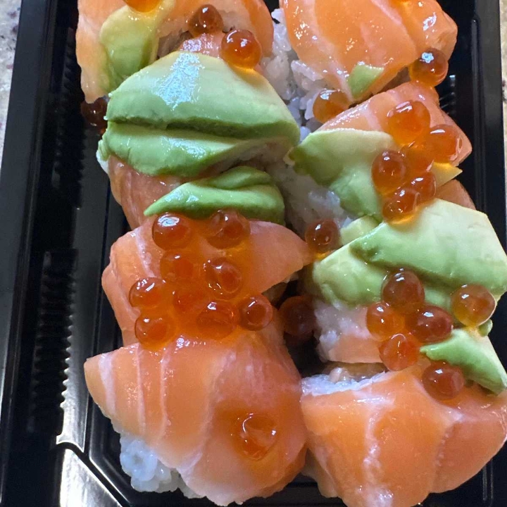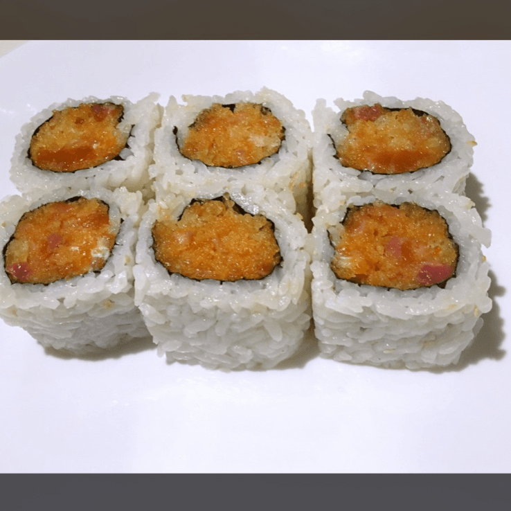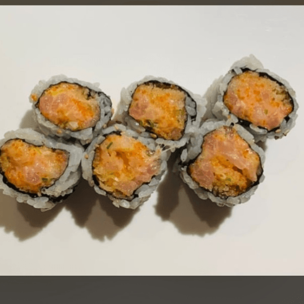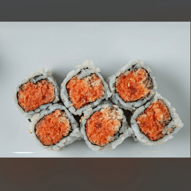 Spicy salmon, crunchy, salmon, avocado, salmon roe