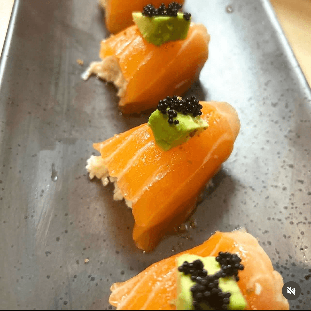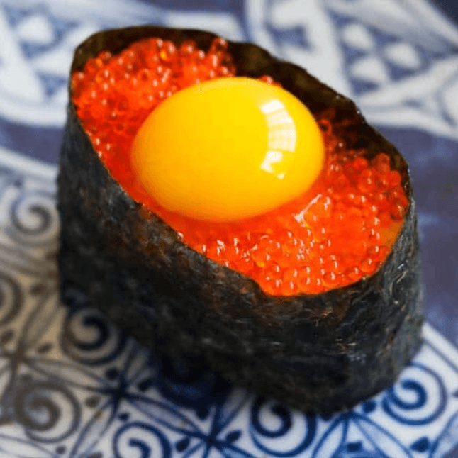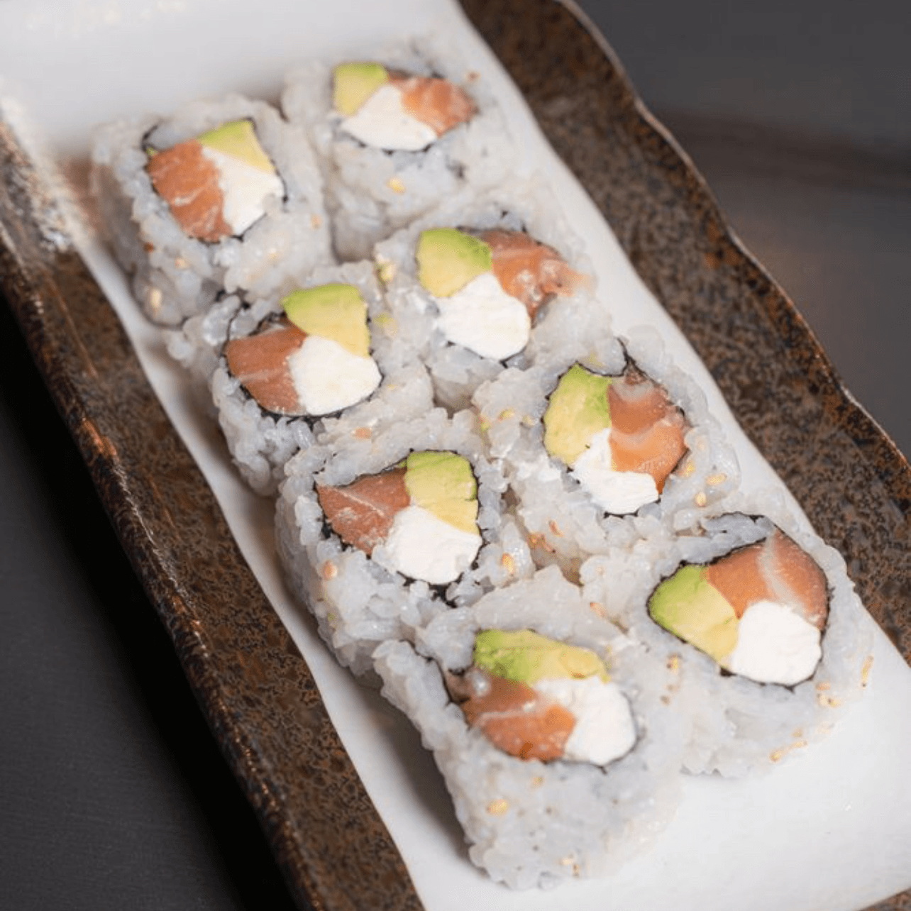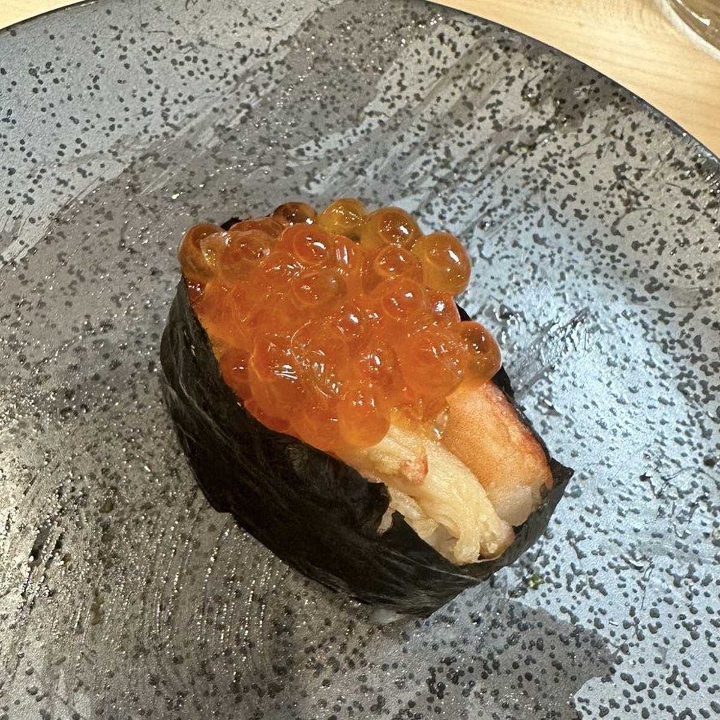 Spicy salmon, crunchy, salmon, avocado, salmon roe