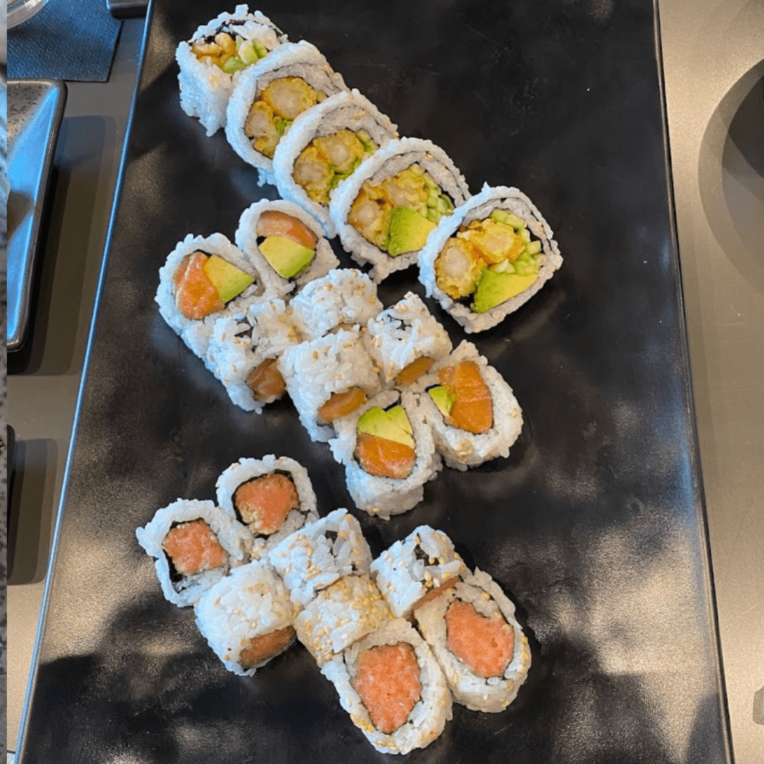 Kani, cucumber, tuna, salmon, white fish, and avocado