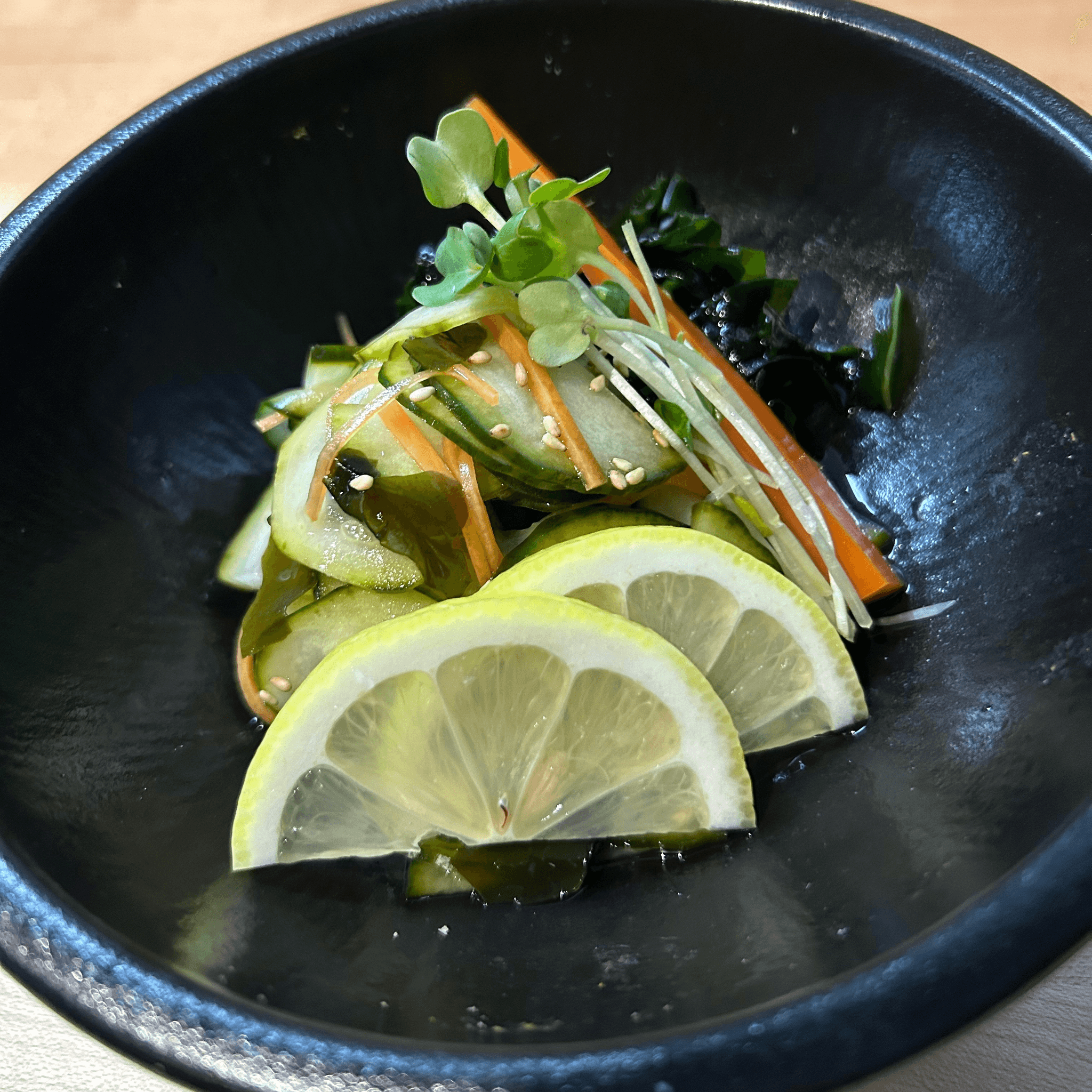 3 types of seaweed, sesame seeds, and Japanese vinegar dressing