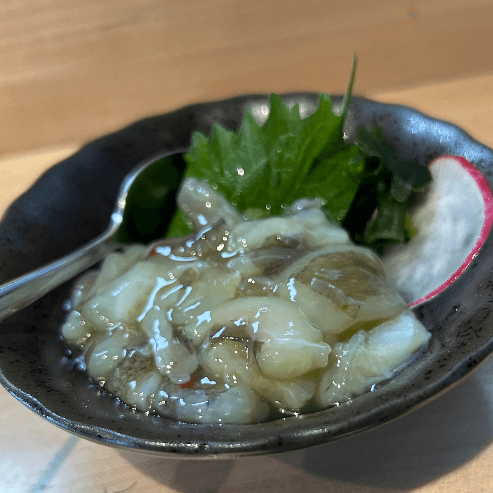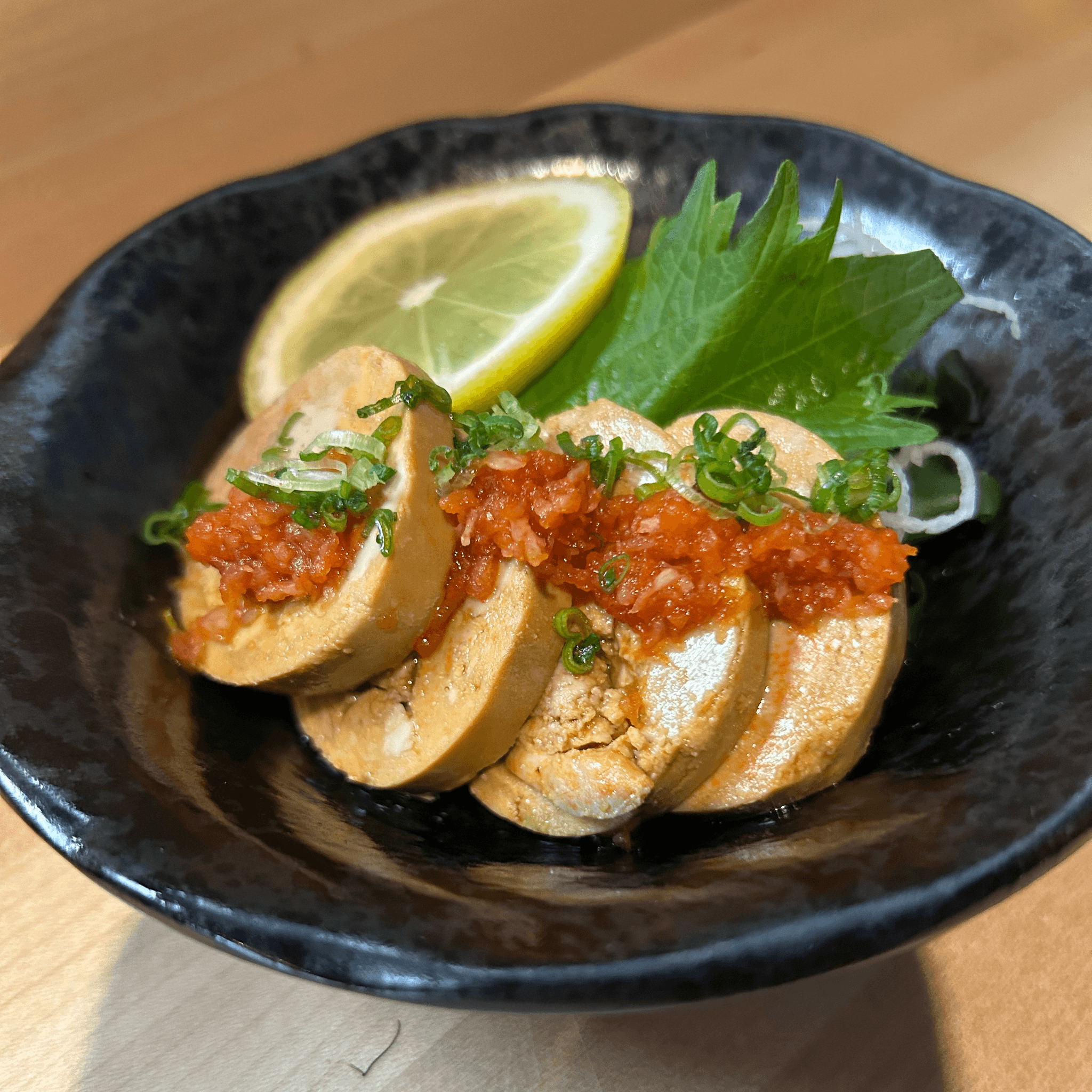 Slices of monkfish liver with ponzu sauce