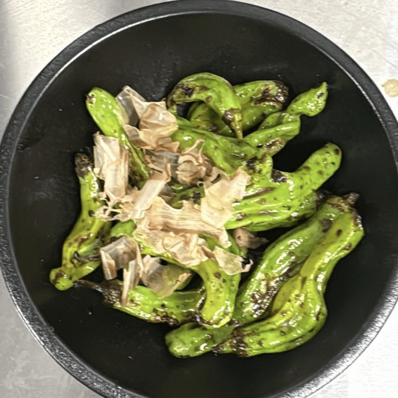 Fried shishito, spicy ponzu, and bonito flakes