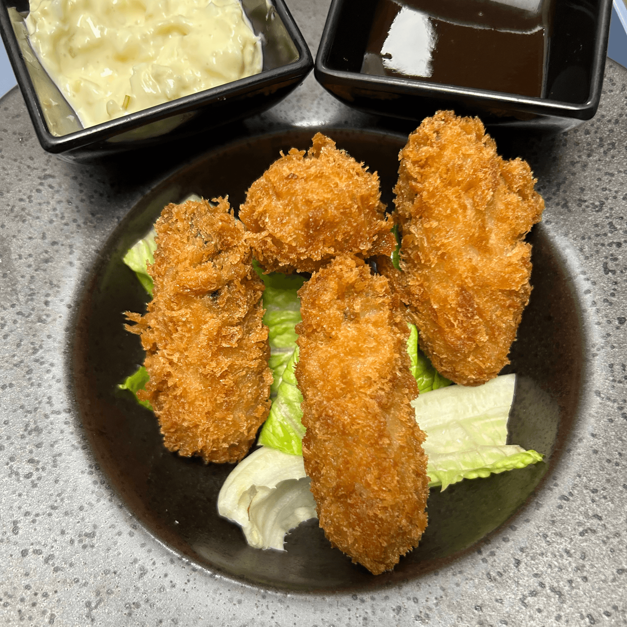 Deep fried oyster served with homemade tartar sauce