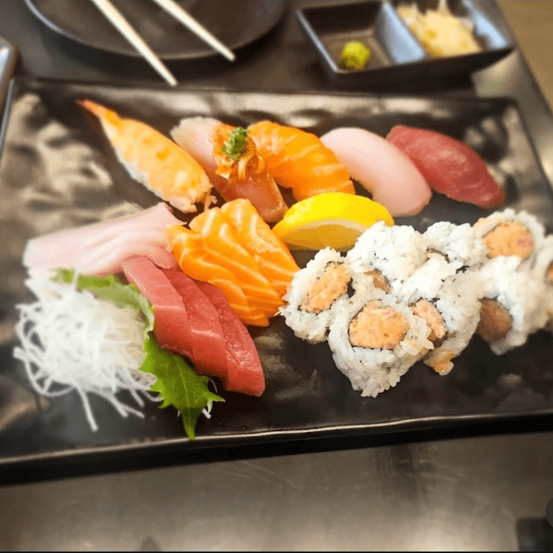 5 nigiri, 9 sashimi, and a choice of tuna, spicy tuna or California roll