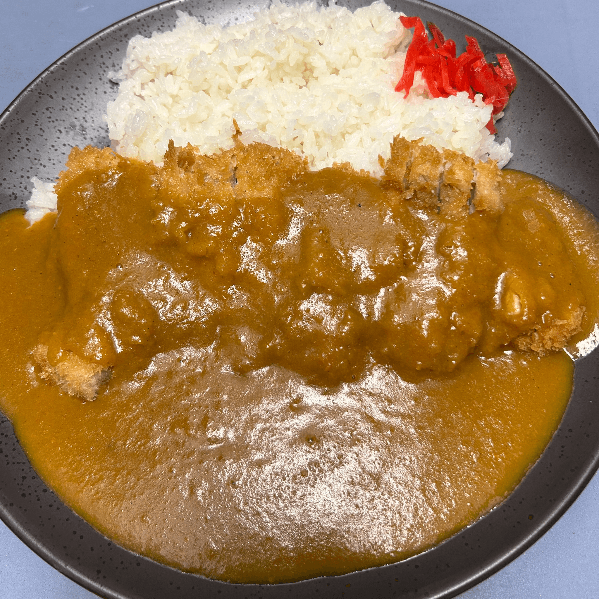Served over rice with broccoli, carrot and a side of miso soup