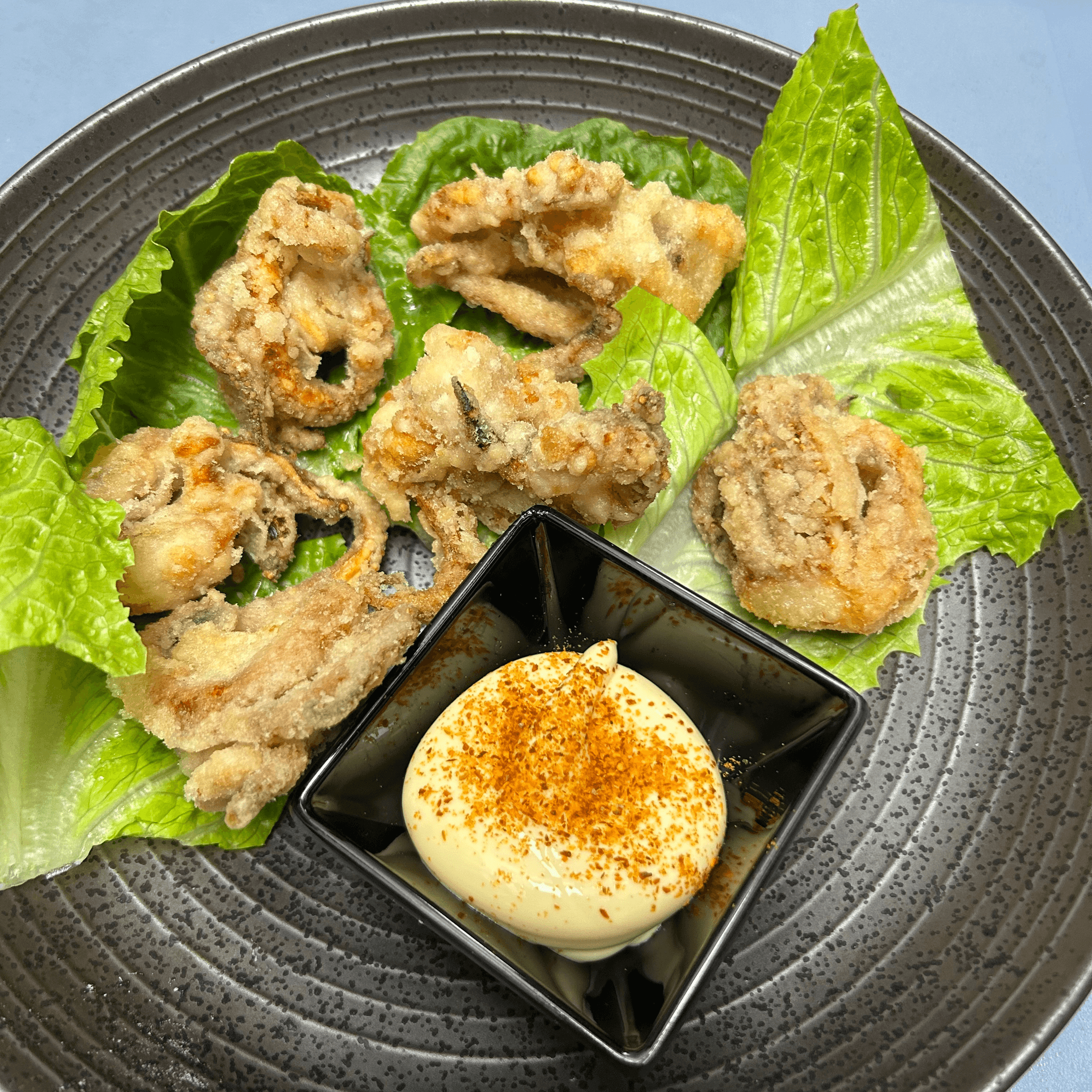 Deep fried squid tentacles, mayo and shichimi dipping sauce