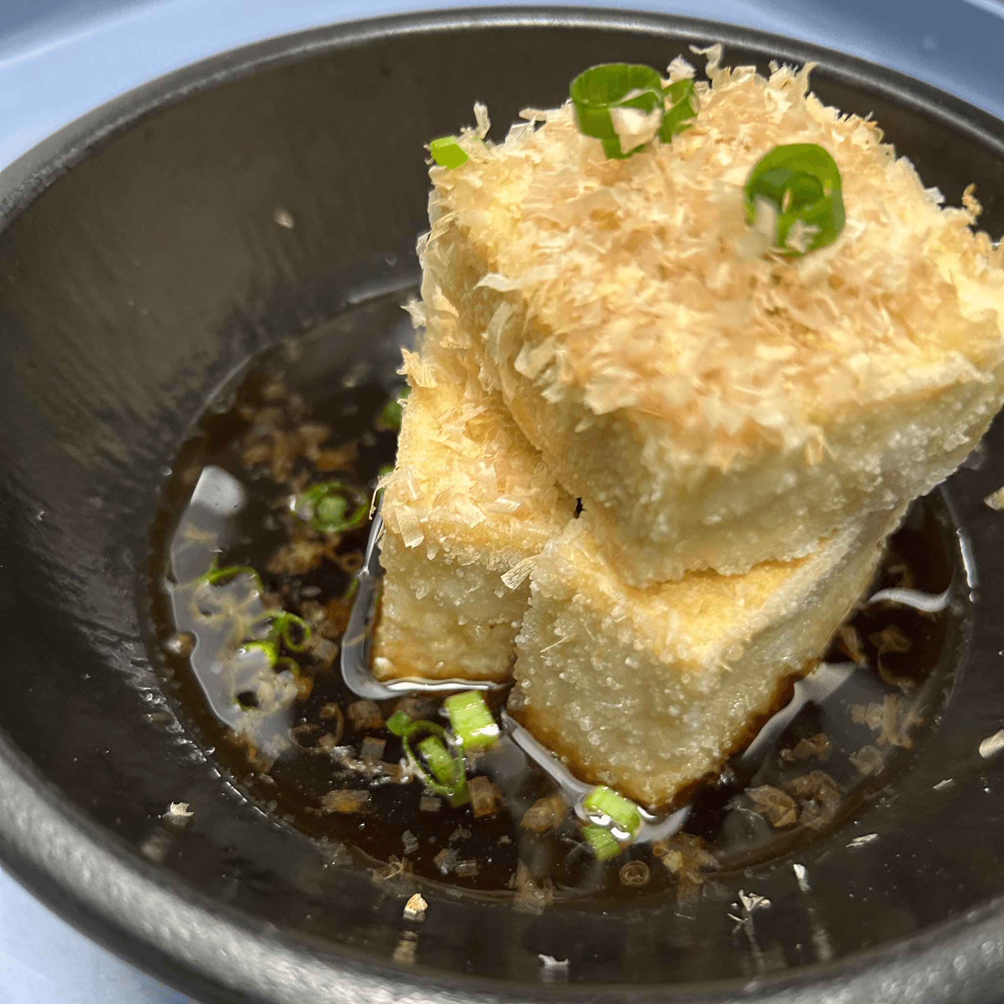 Fried Tofu, tempura sauce, bonito flakes